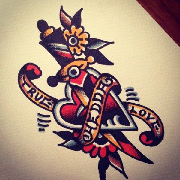 old school小图纹身手稿图案-9张红黑的old school纹身手稿图片