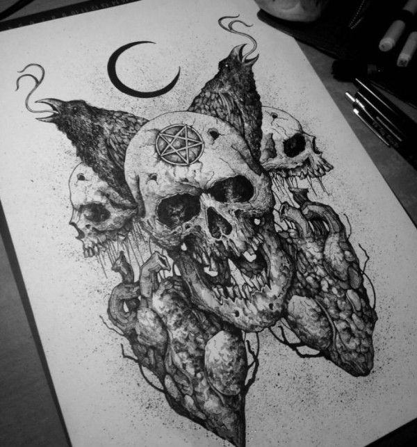 暗黑骷髅纹身手稿图案-暗黑系风格的骷髅纹身手稿图片