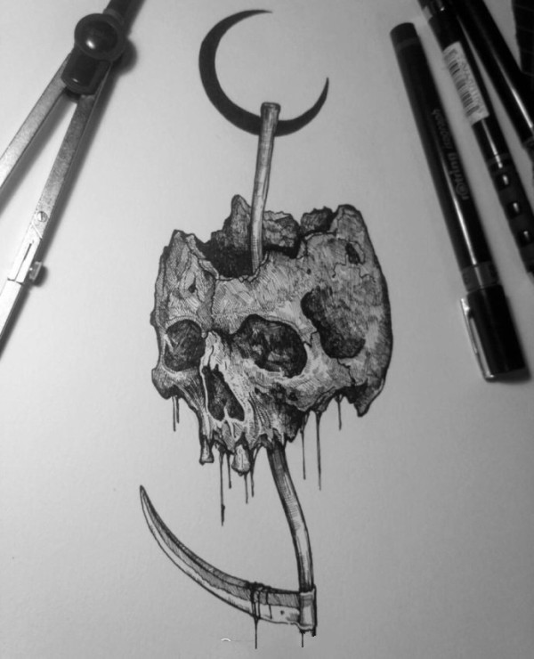 暗黑骷髅纹身手稿图案-暗黑系风格的骷髅纹身手稿图片