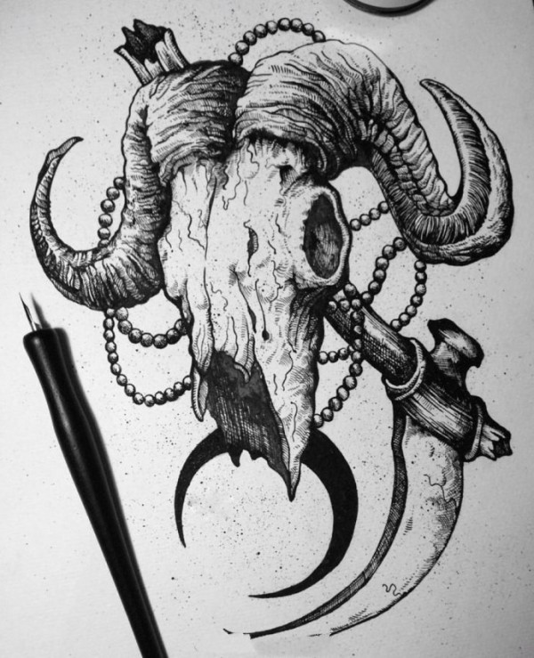 暗黑骷髅纹身手稿图案-暗黑系风格的骷髅纹身手稿图片