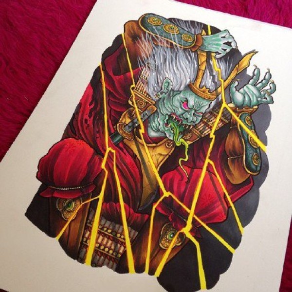 彩色大臂纹身手稿图案-色彩鲜艳的彩色大臂纹身手稿图片