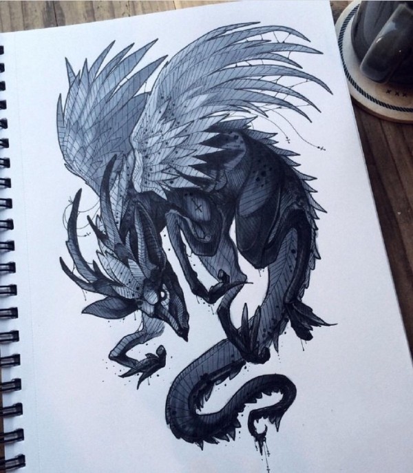 奇幻纹身手稿图案-18张奇幻动物妖魔鬼怪纹身手稿图片