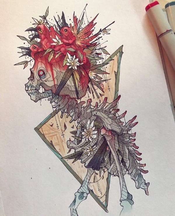 奇幻纹身手稿图案-18张奇幻动物妖魔鬼怪纹身手稿图片