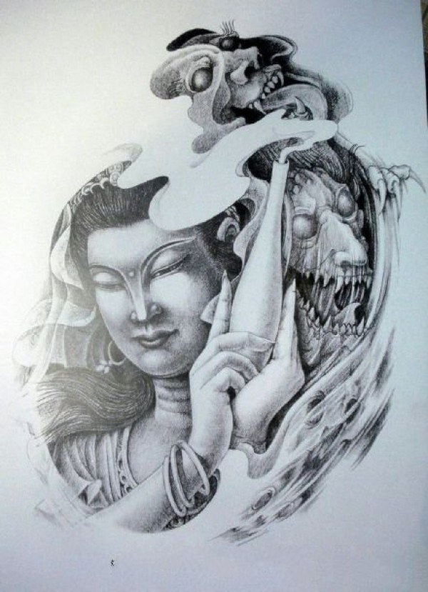 传统纹身观音纹身图案-9张传统观音纹身分类图片