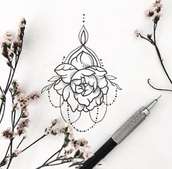 30款漂亮的女生素花纹身手稿图片