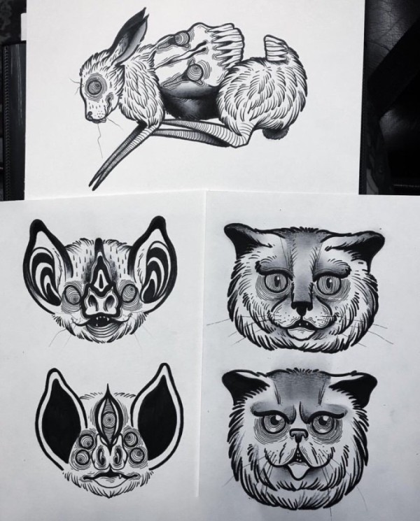35款创意的黑灰色纹身手稿设计图片