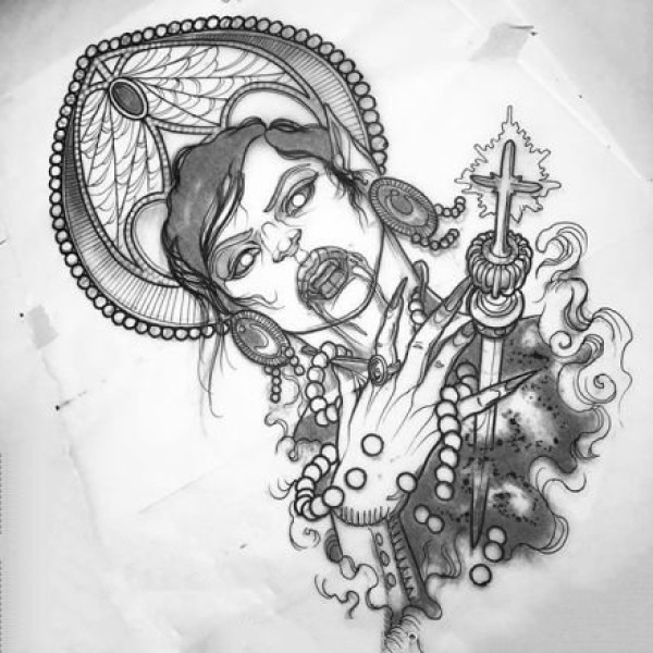 newschool线稿--9张newschool风格的纹身线稿手稿图