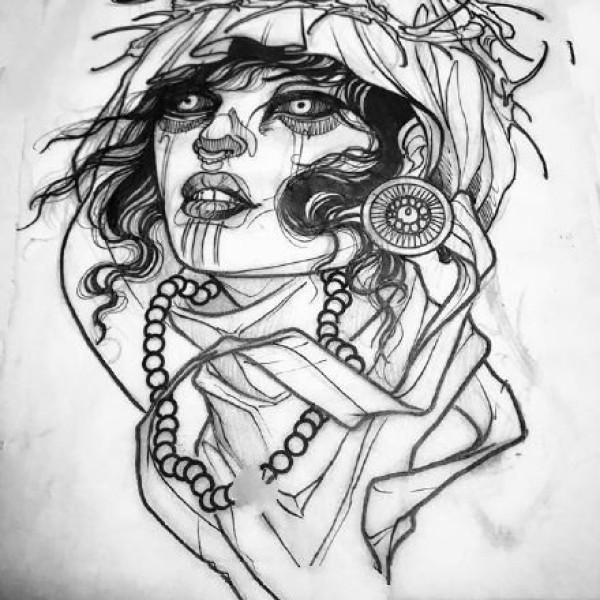 newschool线稿--9张newschool风格的纹身线稿手稿图