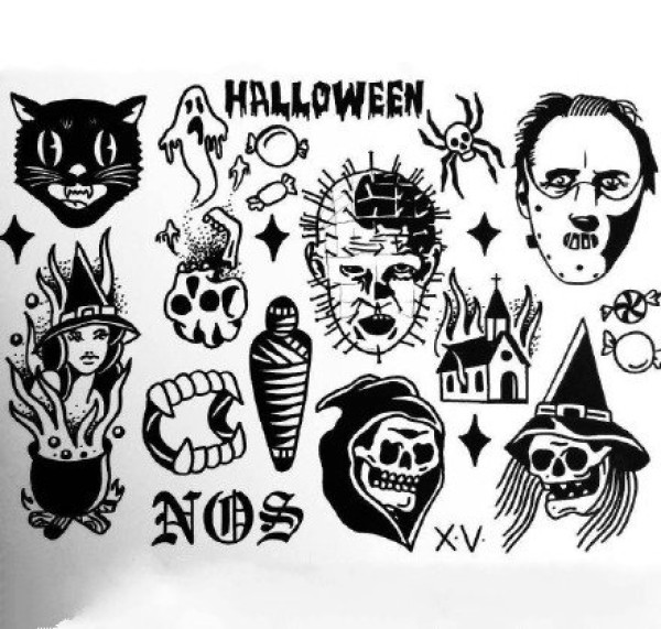 经典实用的黑灰小图纹身手稿图案9张