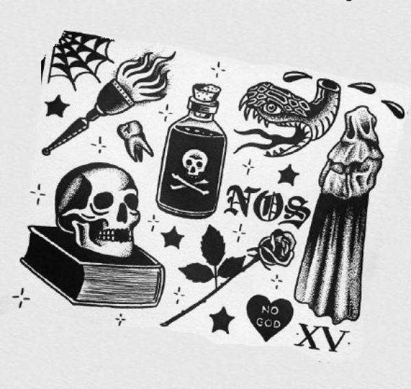 经典实用的黑灰小图纹身手稿图案9张