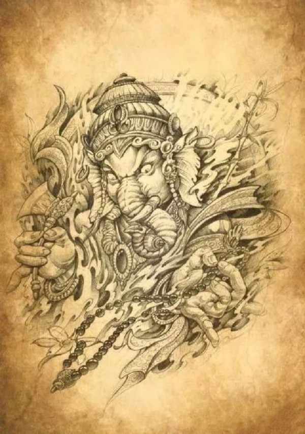 半甲唐狮手稿 传统的9款唐狮主题半甲纹身手稿图片