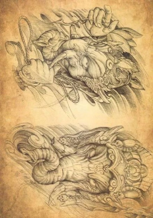 半甲唐狮手稿 传统的9款唐狮主题半甲纹身手稿图片