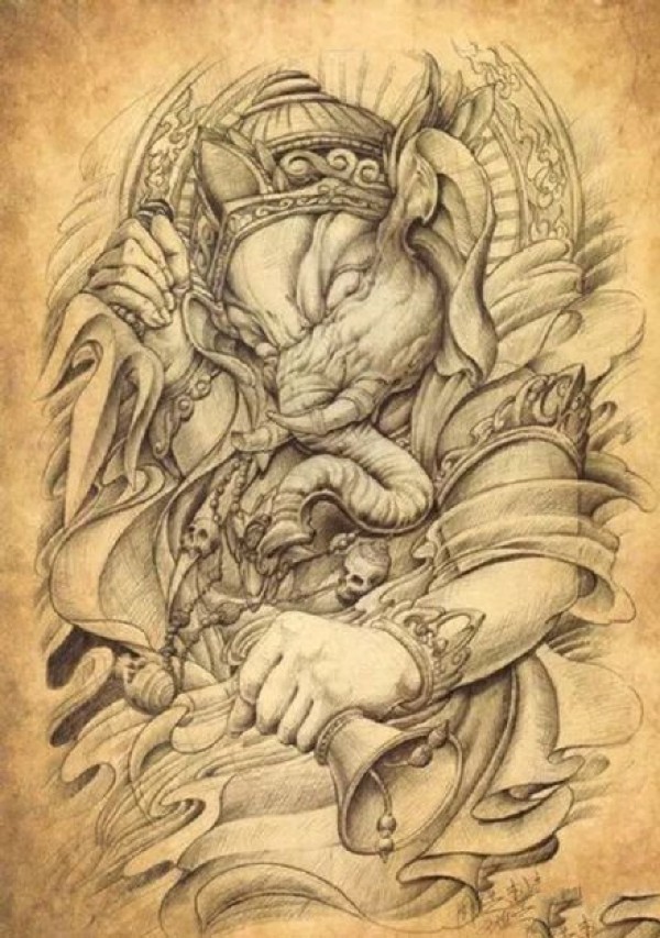 半甲唐狮手稿 传统的9款唐狮主题半甲纹身手稿图片