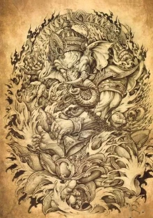 半甲唐狮手稿 传统的9款唐狮主题半甲纹身手稿图片