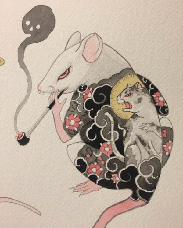 一组衣着华丽的创意纹身老鼠手稿图案欣赏