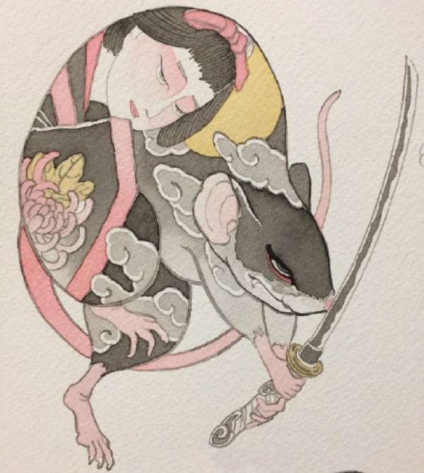 一组衣着华丽的创意纹身老鼠手稿图案欣赏