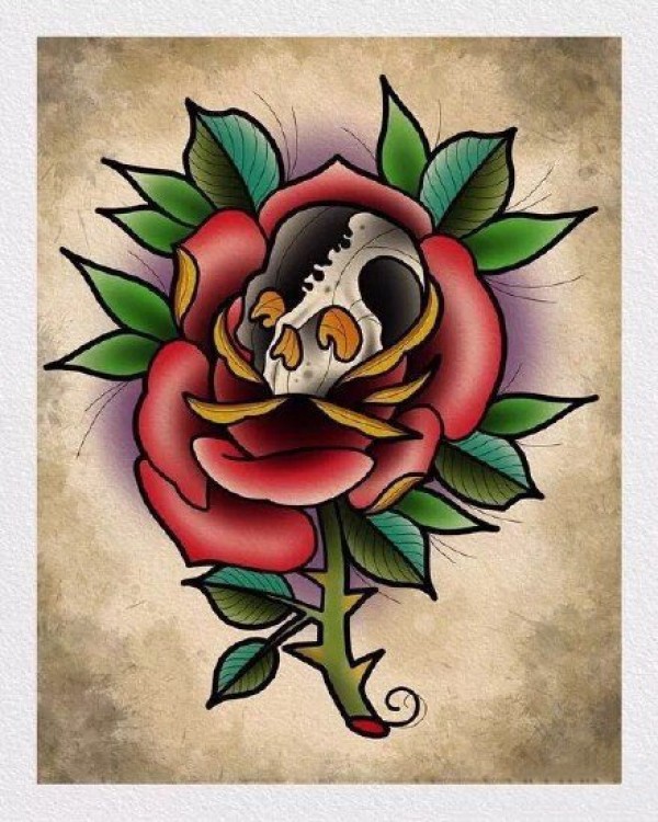 school花朵手稿--一组颜色艳丽的花朵school纹身手稿图案