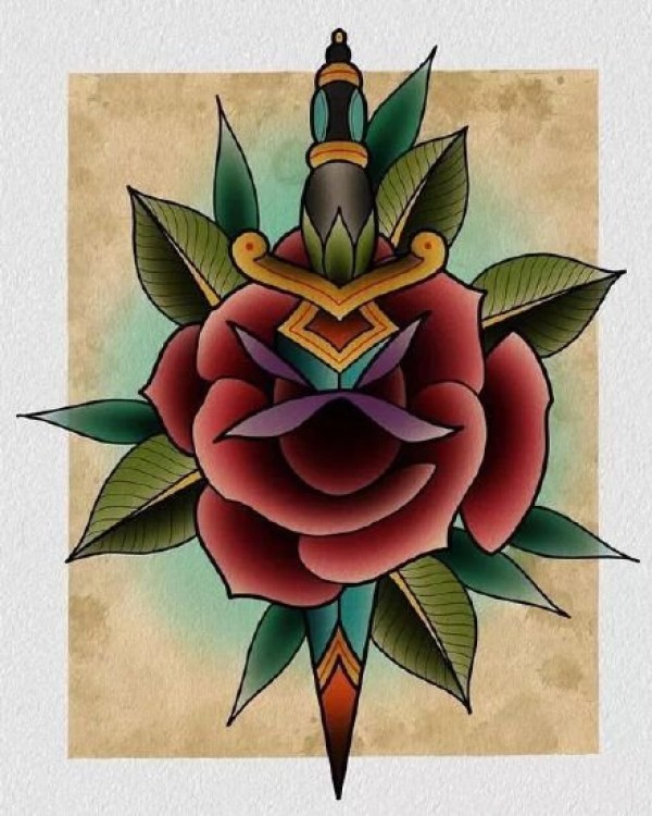 school花朵手稿--一组颜色艳丽的花朵school纹身手稿图案