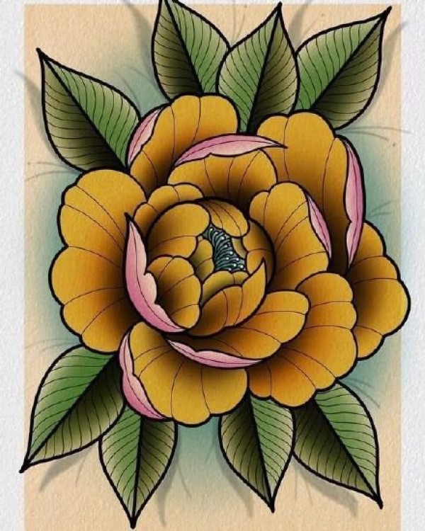 school花朵手稿--一组颜色艳丽的花朵school纹身手稿图案