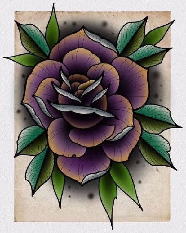school花朵手稿--一组颜色艳丽的花朵school纹身手稿图案