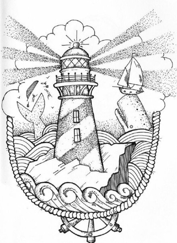 一组灯塔简约素描纹身手稿图案
