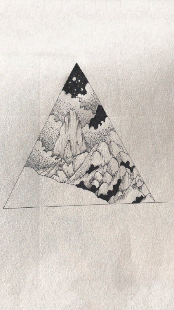 山水风景手稿--33张几何山水风景纹身手稿图案
