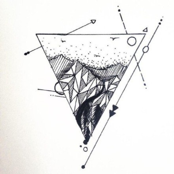 山水风景手稿--33张几何山水风景纹身手稿图案