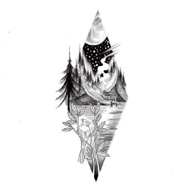 山水风景手稿--33张几何山水风景纹身手稿图案