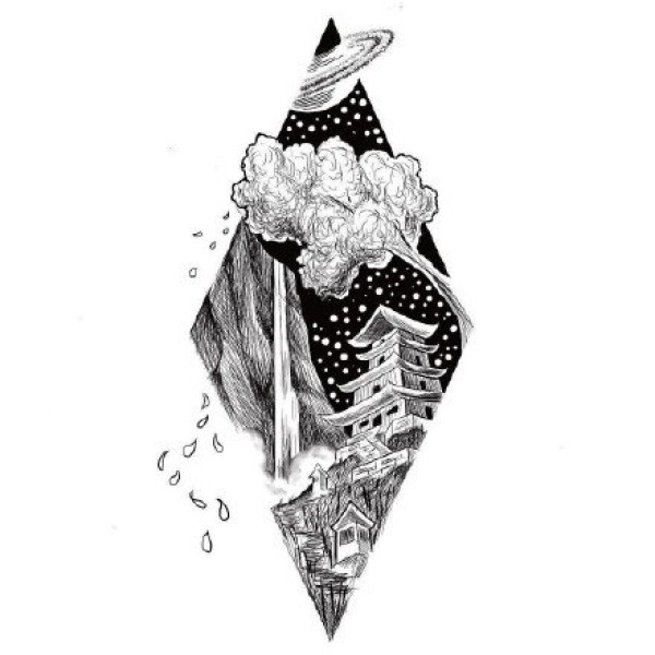 山水风景手稿--33张几何山水风景纹身手稿图案