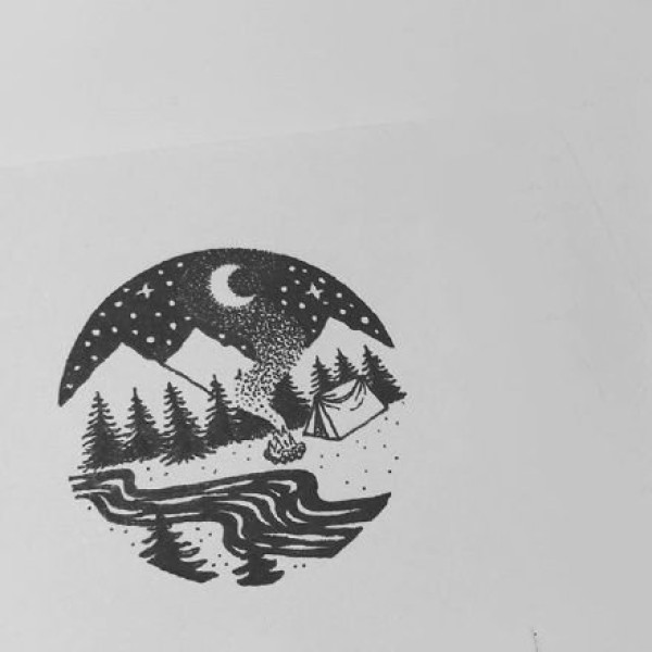 山水风景手稿--33张几何山水风景纹身手稿图案