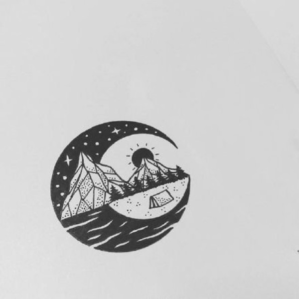山水风景手稿--33张几何山水风景纹身手稿图案