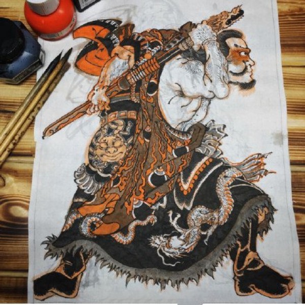 一组满背大气九龙拉棺纹身图案作品和手稿