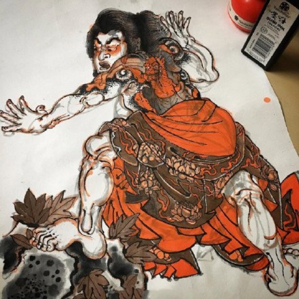 一组满背大气九龙拉棺纹身图案作品和手稿