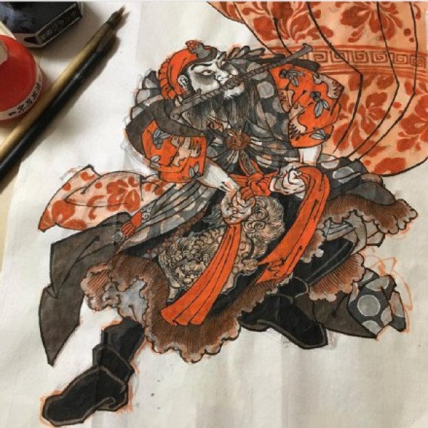 传统艺妓般若纹身图案手稿