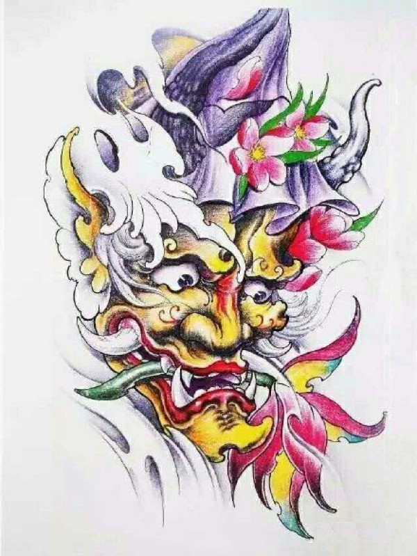 般若纹身手稿--25张优秀的彩色般若刺青手稿图案