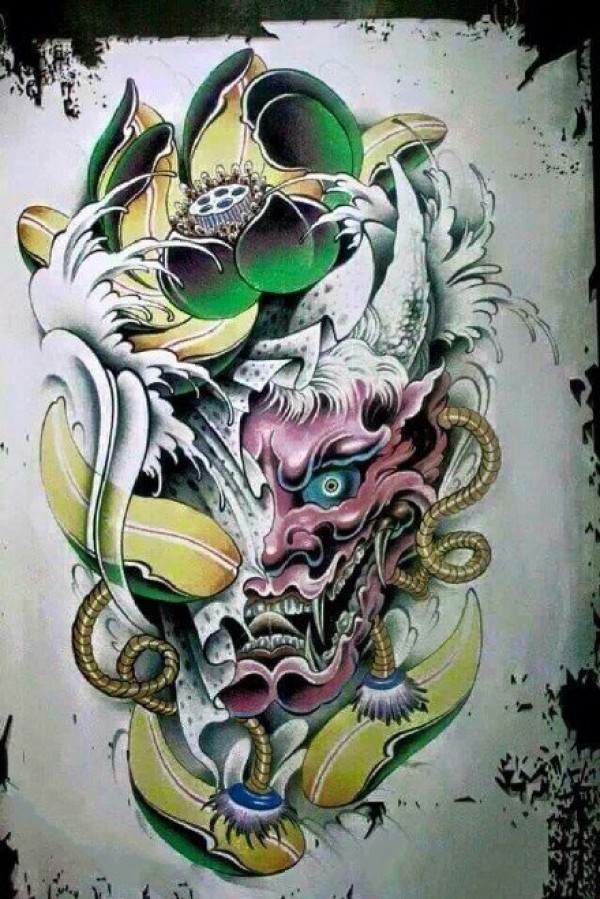 般若纹身手稿--25张优秀的彩色般若刺青手稿图案