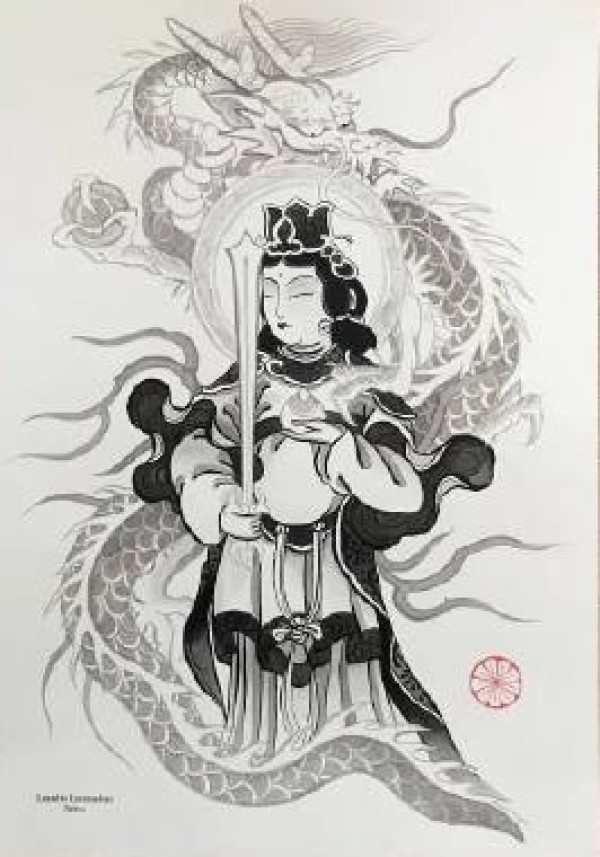 半甲唐狮手稿 传统的9款唐狮主题半甲纹身手稿图片