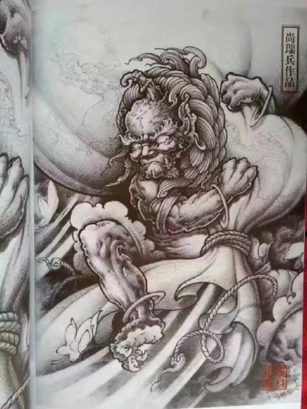 半甲唐狮手稿 传统的9款唐狮主题半甲纹身手稿图片