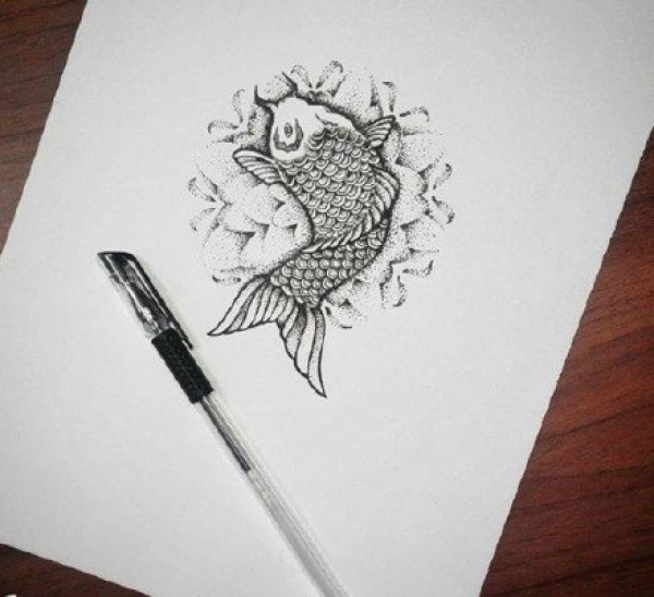 传统的30款鲤鱼纹身手稿图片赏析