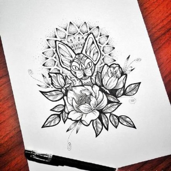小清新猫头主题的一组猫神纹身素材手稿