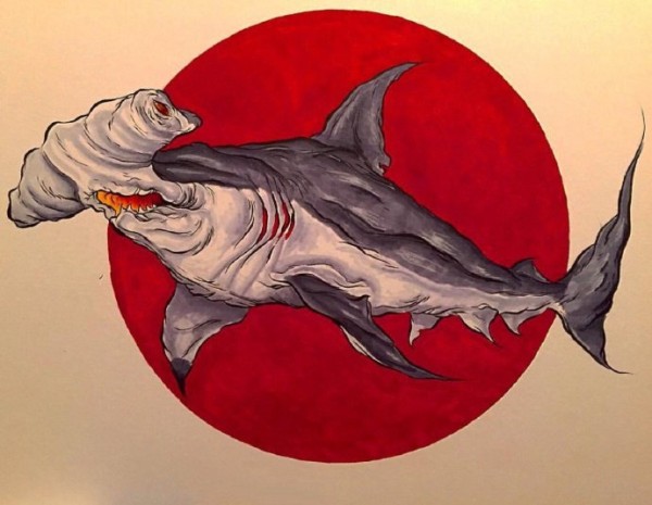 一组彩色鲨鱼纹身手稿图案欣赏