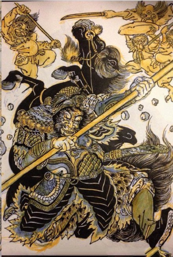 一组满背大气九龙拉棺纹身图案作品和手稿