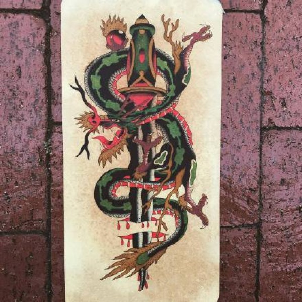 一组满背大气九龙拉棺纹身图案作品和手稿