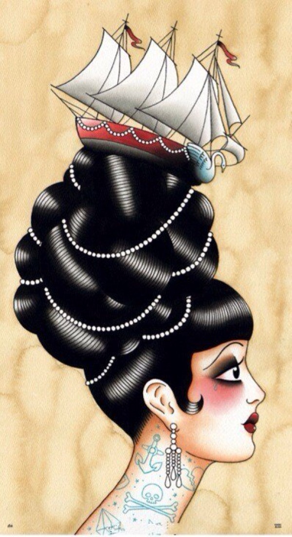 14张欧美复古女郎的纹身手稿素材图案