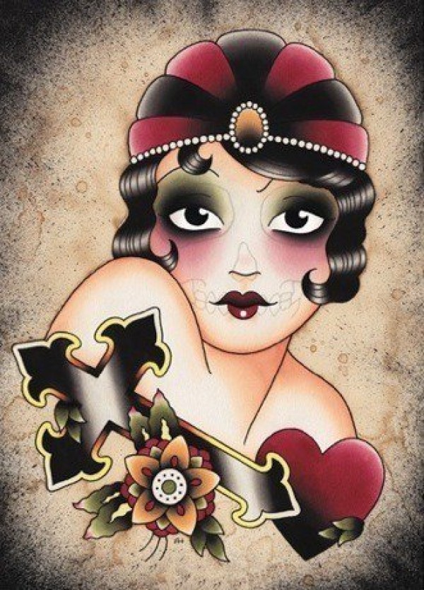 14张欧美复古女郎的纹身手稿素材图案