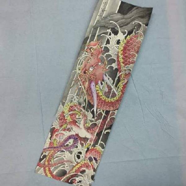 一组满背大气九龙拉棺纹身图案作品和手稿