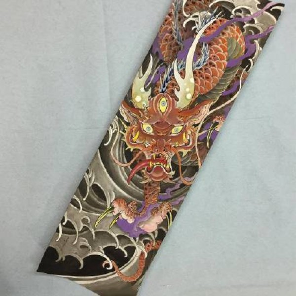 一组满背大气九龙拉棺纹身图案作品和手稿