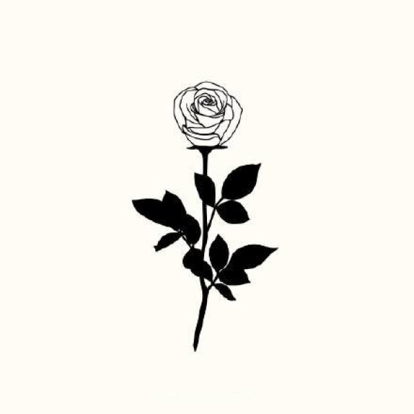 一组简约小黑色玫瑰花朵纹身手稿图案