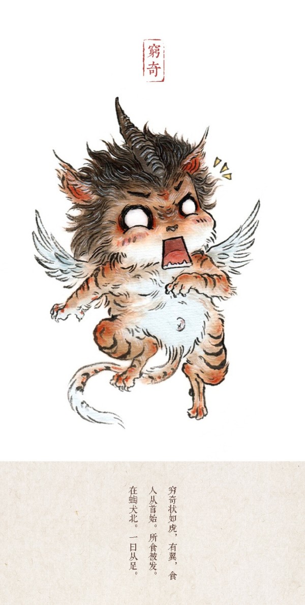一组萌萌哒山海经Q版小妖怪纹身手稿图案