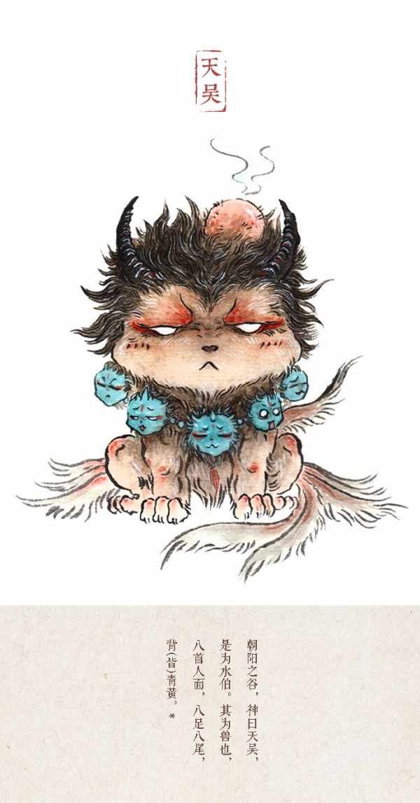 一组萌萌哒山海经Q版小妖怪纹身手稿图案